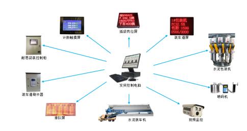 耐思袋裝水泥智能發(fā)貨控制系統(tǒng)由上位機中控系統(tǒng)、包裝機、裝車機、噴碼機、計數(shù)系統(tǒng)、自動擋包裝置、自動扳道裝置、PLC控制系統(tǒng)、裝車道刷卡終端、LED指示系統(tǒng)、聲光報警系統(tǒng)、視頻監(jiān)控系統(tǒng)、數(shù)據(jù)傳輸系統(tǒng)組成。
