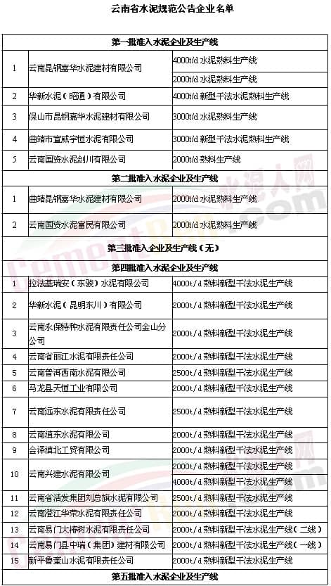 各水泥規(guī)范公告企業(yè)(見以下名單)應結合年度生產(chǎn)經(jīng)營情況,對照《水泥行業(yè)規(guī)范條件(2015年本)》中“建設要求與產(chǎn)業(yè)布局、生產(chǎn)工藝與技術裝備、節(jié)能降耗和綜合利用、質(zhì)量管理和產(chǎn)品質(zhì)量、安全生產(chǎn)職業(yè)衛(wèi)生和社會責任”等具體條件要求,逐項開展自查,并對自查中發(fā)現(xiàn)的問題提出整改措施和時限。