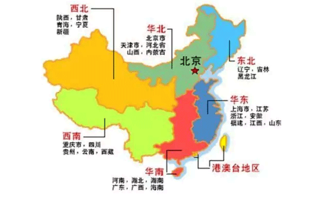 圖:六大區(qū)域劃分(港澳臺除外)