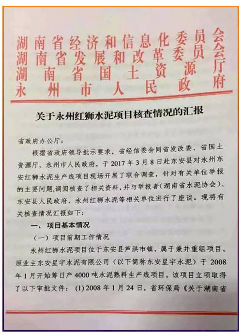 圖:關(guān)于永州紅獅水泥項目核查情況匯報