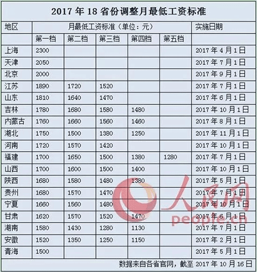 據(jù)了解,吉林、河南、山西、寧夏等多地在國慶節(jié)后開始執(zhí)行新的最低工資標(biāo)準(zhǔn)。事實上為著力保障低收入勞動者權(quán)益,2017年以來至少已有18個省份調(diào)高了最低工資標(biāo)準(zhǔn)。