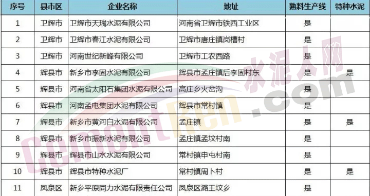 二、新鄉(xiāng)市所有熟料生產(chǎn)線將于2017年11月15日至2018年3月15日全部停產(chǎn)。其中包含三家特種水泥生產(chǎn)線。