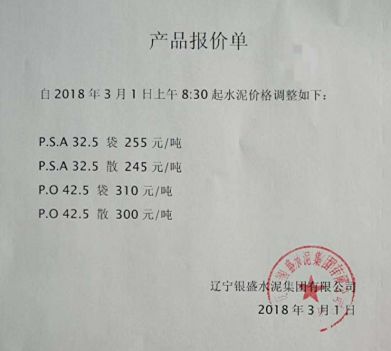 3月1日遼寧銀盛水泥發(fā)布價(jià)格調(diào)整通知。