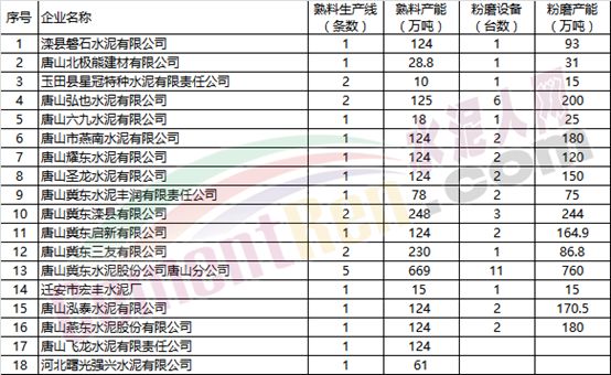 唐山地區(qū)熟料生產(chǎn)企業(yè)名單
