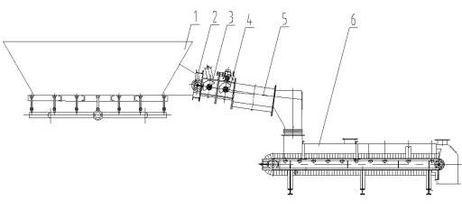 4、流量調(diào)節(jié)閥 5、布風(fēng)斜槽 6、密閉皮帶式定量給料機(jī)
