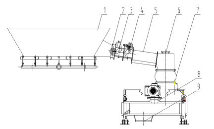 6、轉(zhuǎn)接溜子 7、進(jìn)口軟連接 8、輪輻轉(zhuǎn)子計(jì)量裝置 9、下料接口