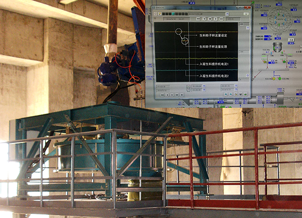 在運(yùn)行曲線圖中,輪輻轉(zhuǎn)子秤的給定和反饋曲線基本重合,黃色曲線為提升機(jī)電流1反饋,青色曲線為提升機(jī)電流2反饋,由圖中曲線可知整個(gè)喂料流量跟蹤穩(wěn)定、快速,提升機(jī)電流比較穩(wěn)定。此外,該控制系統(tǒng)具有遠(yuǎn)程診斷功能,我們可監(jiān)控喂料系統(tǒng)使用情況,即時(shí)提供技術(shù)支持,系統(tǒng)運(yùn)行實(shí)物和曲線圖如圖6所示。