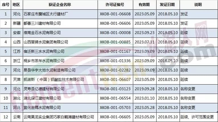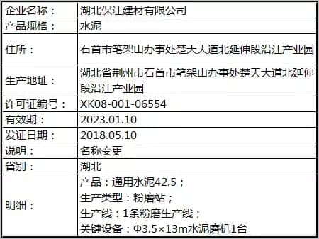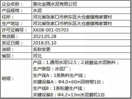 質(zhì)檢總局發(fā)放2018年5月第一批水泥企業(yè)生產(chǎn)許可證