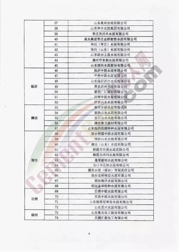 備注:以上名單來源于山東省水泥行業(yè)協(xié)會(huì)