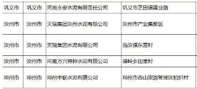 河南省水泥企業(yè)名單(含特種水泥)