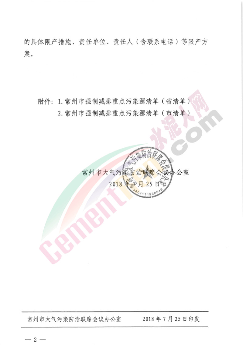 常州此次停限產(chǎn)要求或是應(yīng)此前常州市人民政府關(guān)于印發(fā)《常州市2018年大氣污染防治攻堅行動方案》的通知。要求加大水泥等行業(yè)企業(yè)的污染綜合治理力度,要求對照年內(nèi)二氧化硫、氮氧化物、一次PM2.5和揮發(fā)性有機物減排比例分別不低于51%、45%、49%和30%的目標。(相關(guān)鏈接:大氣污染防治攻堅戰(zhàn) 二十多家水泥企業(yè)面臨停限產(chǎn))