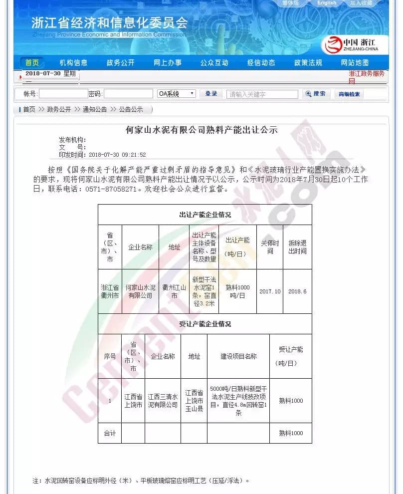 浙江省經(jīng)信委相關(guān)負(fù)責(zé)人表示:進(jìn)入公告期,即證明此項(xiàng)目1000噸/日產(chǎn)能置換指標(biāo)符合相關(guān)水泥產(chǎn)能置換實(shí)施辦法可予以轉(zhuǎn)出。