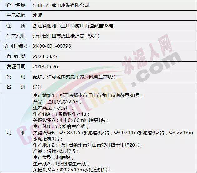 此次用于置換的浙江衢州市何家山水泥有限公司1000t/d熟料產(chǎn)能沒有生產(chǎn)許可證,何家山水泥有限公司現(xiàn)有許可證許可內(nèi)容不包括此條1000t/d熟料產(chǎn)能。根據(jù)工信部原[2017]337號(hào)文件要求:已超過國家明令淘汰期限的落后產(chǎn)能,已享受獎(jiǎng)補(bǔ)資金和政策支持的退出產(chǎn)能,無生產(chǎn)許可的水泥熟料產(chǎn)能,均不得用于產(chǎn)能置換。