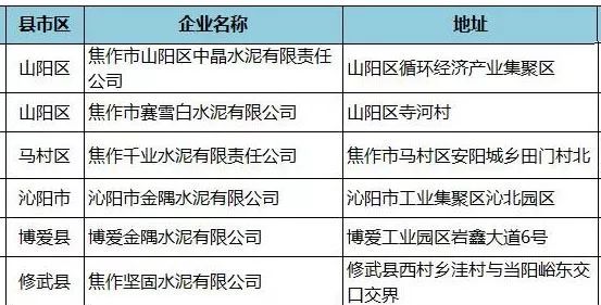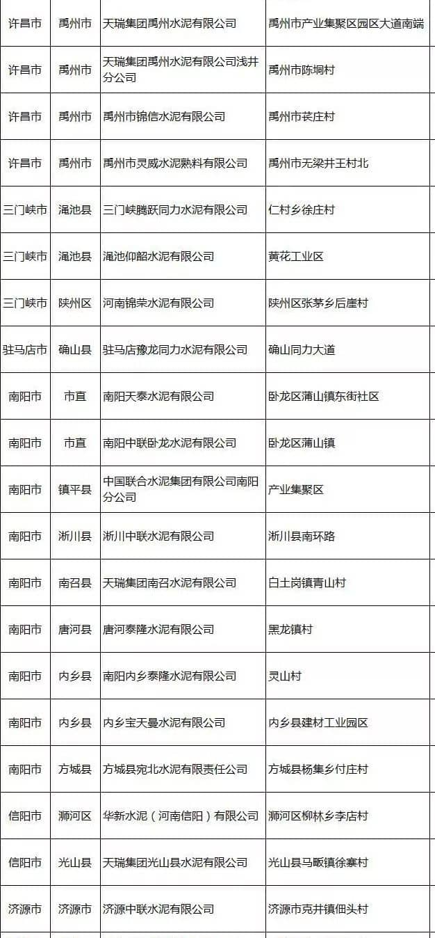 附:河南省水泥企業(yè)名單(含特種水泥)