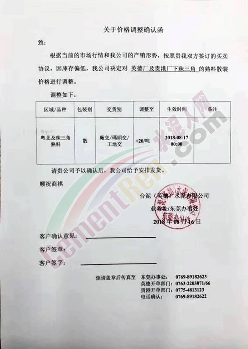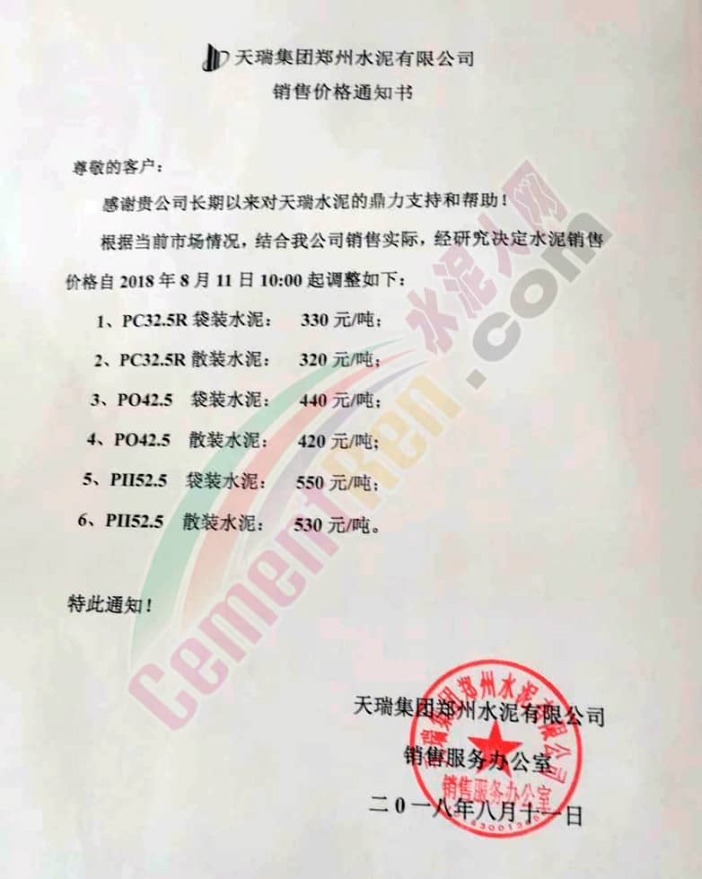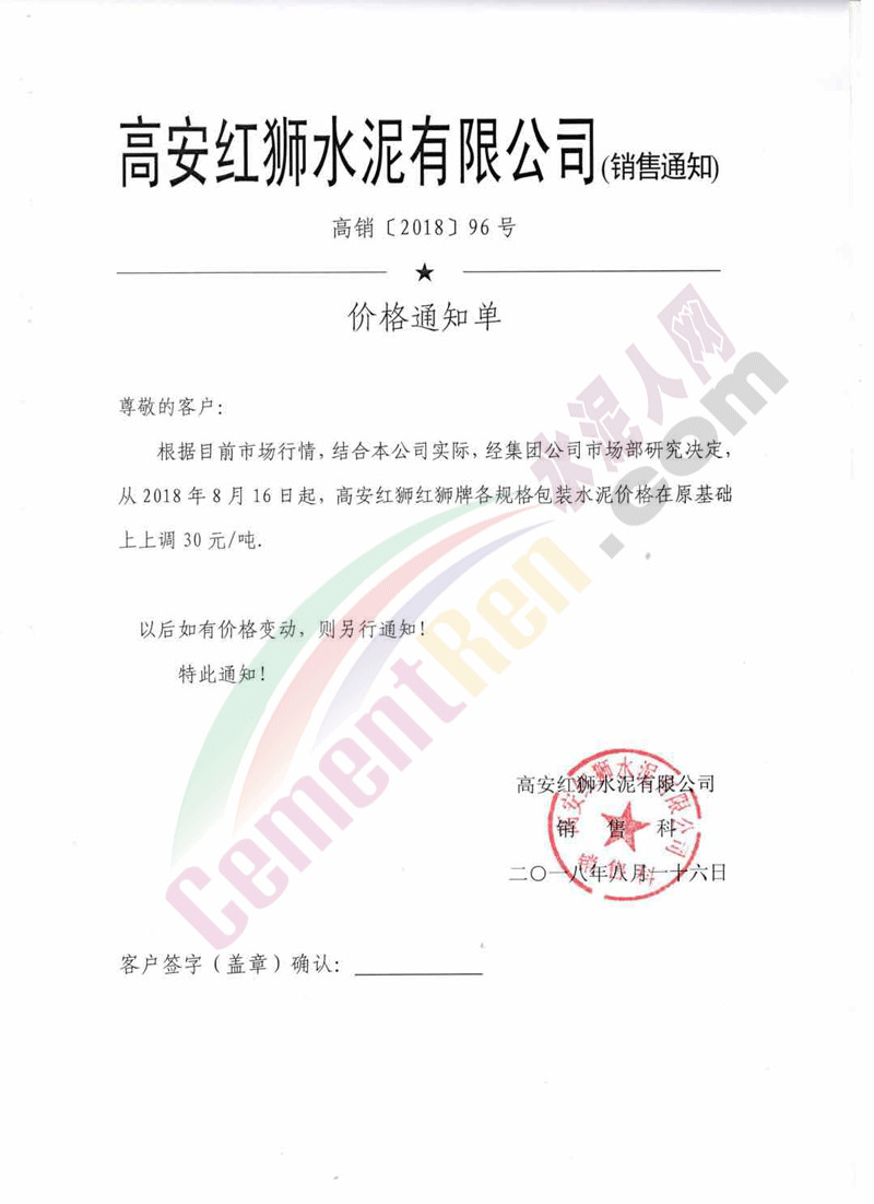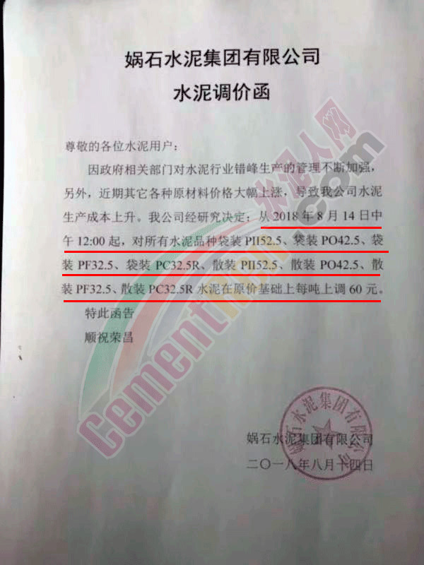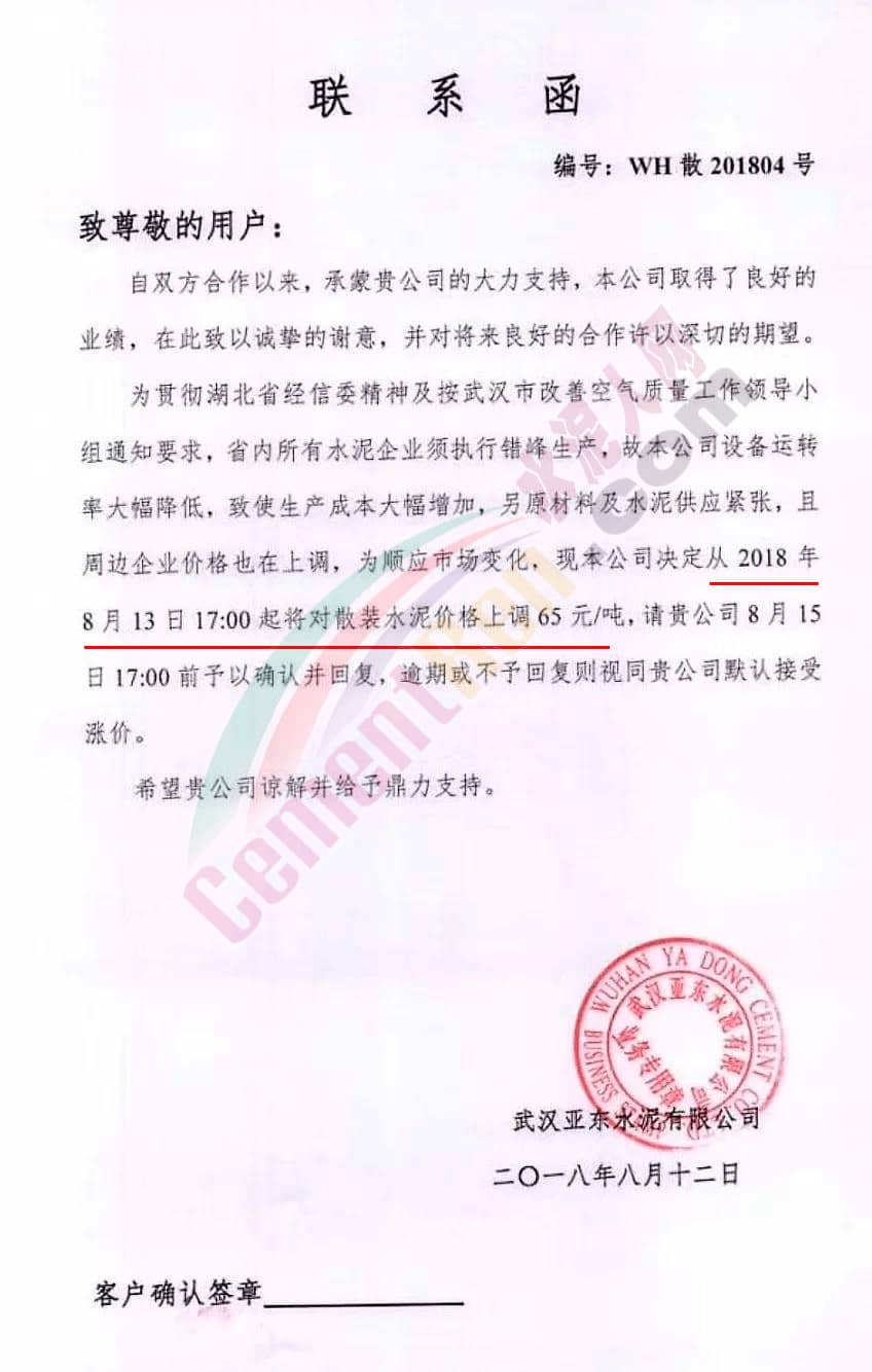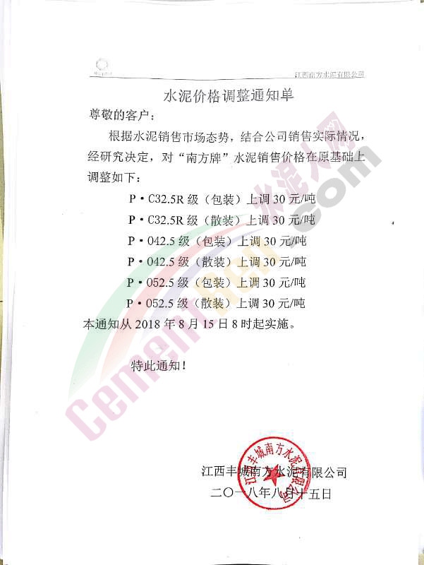 附部分水泥企業(yè)漲價(jià)通知: