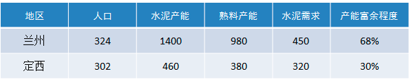 定西市共有三家水泥企業(yè),熟料產(chǎn)能380萬(wàn)噸、水泥產(chǎn)能460萬(wàn)噸;水泥市場(chǎng)需求合計(jì)約320萬(wàn)噸,產(chǎn)能富余程度30%。