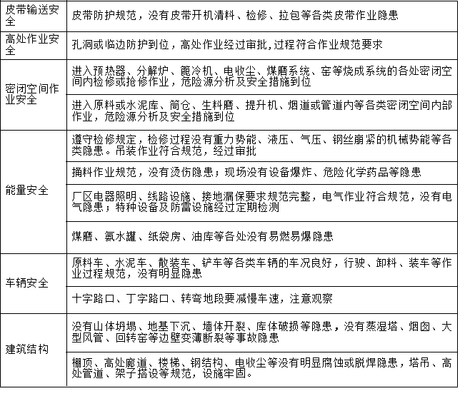 六、附:水泥行業(yè)重大隱患檢查表
