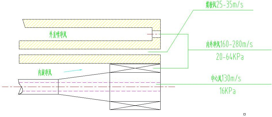 (1) 所有類型的噴煤管(三通、四通、多通)都是大速差同向射流夾層燃燒原理。 沒有另類。其余都是制造商宣傳的賣點(diǎn)而已。
