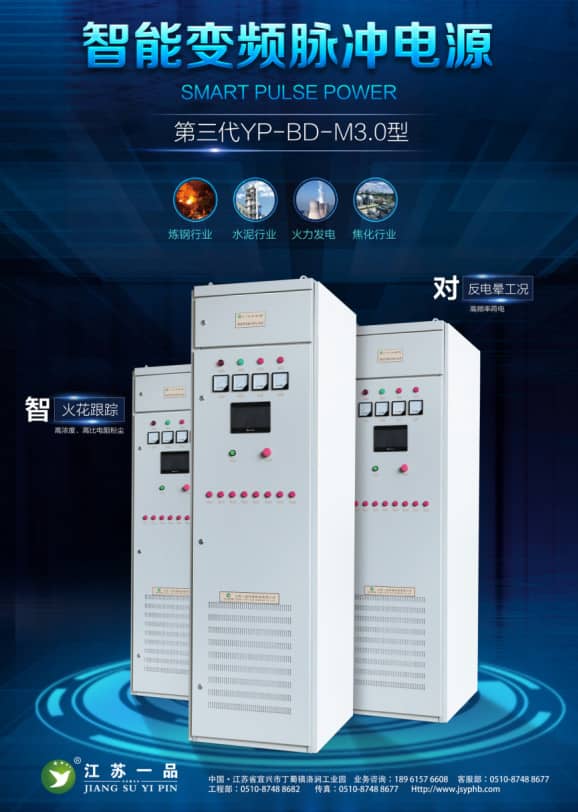 在確定選用電改電方案前,我們對(duì)除塵電源進(jìn)行了專(zhuān)項(xiàng)考察,查閱了國(guó)內(nèi)外先進(jìn)的除塵電源技術(shù),考察了國(guó)內(nèi)多家除塵電源生產(chǎn)企業(yè),經(jīng)技術(shù)專(zhuān)業(yè)比較,多方論證,最終選擇了由江蘇一品環(huán)保研發(fā)生產(chǎn)的與國(guó)外先進(jìn)除塵電源技術(shù)同步的“YP-BD-M型智能變頻脈沖電源”。
