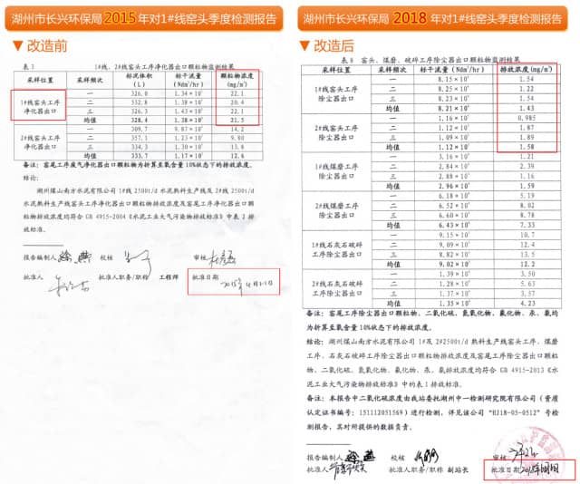 湖州煤山南方水泥改造前后數(shù)據(jù)對(duì)比