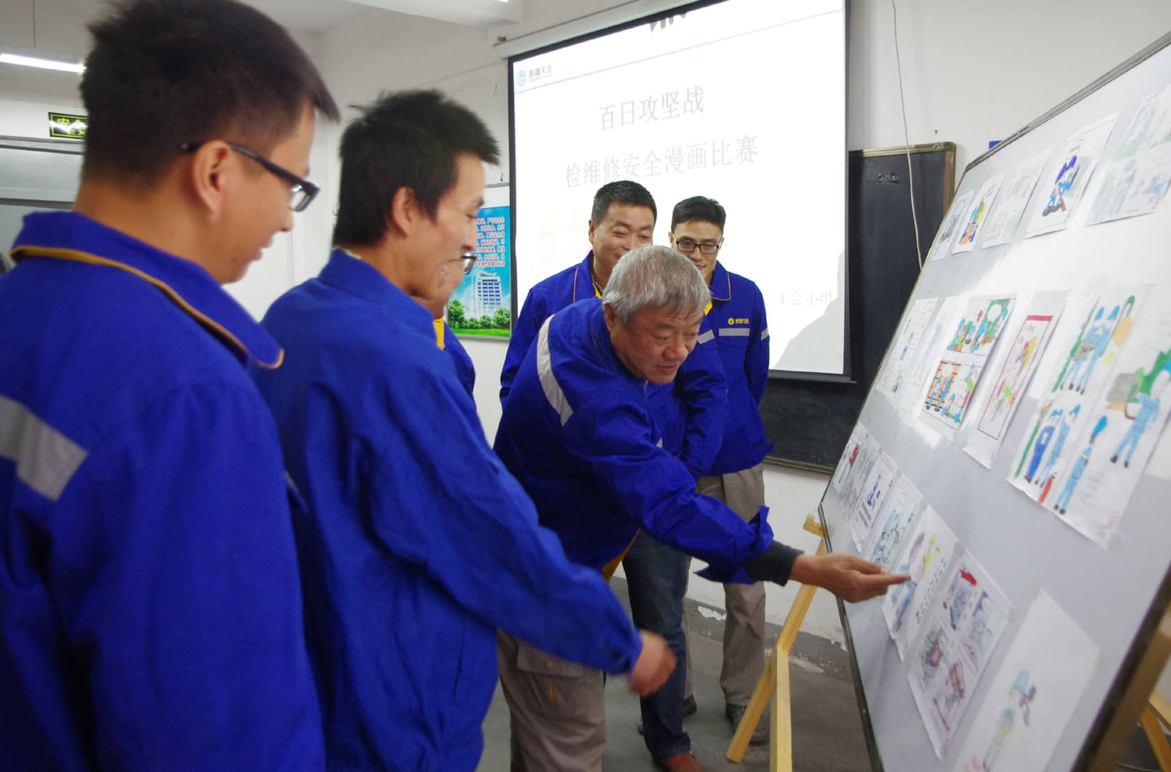 11月7日,天業(yè)天偉水泥公司水泥車間,在學習室展出了18幅安全漫畫,吸引了員工們前來觀看,這是車間黨支部為助力安全生產(chǎn)百日攻堅戰(zhàn)開展的安全漫畫展比賽。