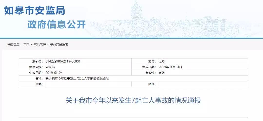 7.2019年1月18日14時左右,位于九華鎮(zhèn)的如皋市龍珠服裝有限公司在生產(chǎn)作業(yè)時,發(fā)生一起高處墜落事故,造成1人死亡。