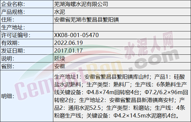 據(jù)水泥人網(wǎng)了解,蕪湖南方水泥有限公司為上海南方水泥有限公司100%控股企業(yè),而上海南方水泥有限公司的大股東是中國建材股份有限公司旗下的南方水泥有限公司。