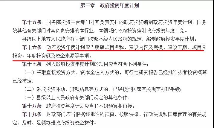 該《條例》是我國政府投資領(lǐng)域第一部行政法規(guī),其中明確要求: