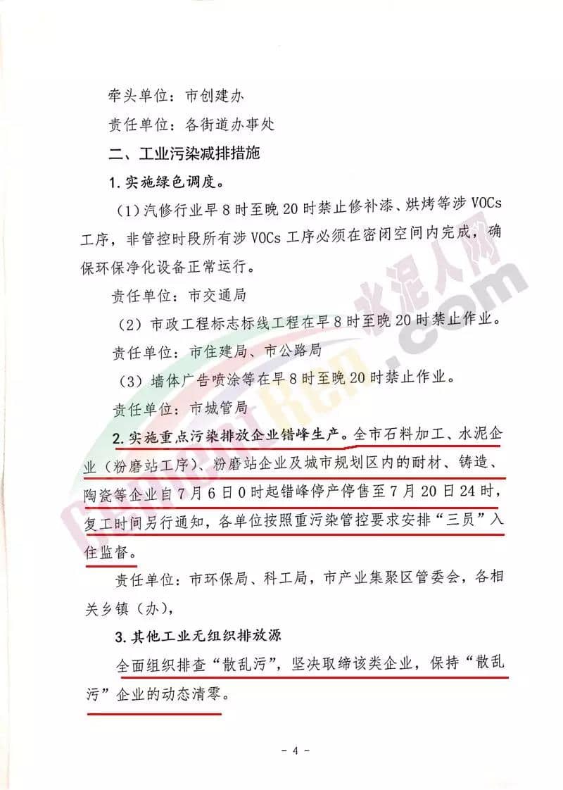 通知明確要求,禹州市全市石料加工、水泥企業(yè)(粉磨站工序)、粉磨站企業(yè)及城市規(guī)劃區(qū)內(nèi)的耐材、鑄造、陶瓷等企業(yè)自7月6日0時(shí)起錯(cuò)峰停產(chǎn)停售至7月20日24時(shí),復(fù)工時(shí)間另行通知,各單位按照重污染管控要求安排“三員”入住監(jiān)督。