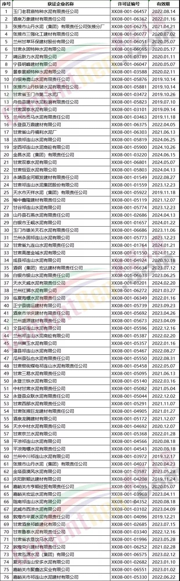 附上海、福建、海南、重慶、甘肅四省兩市220家水泥生產(chǎn)企業(yè)名單