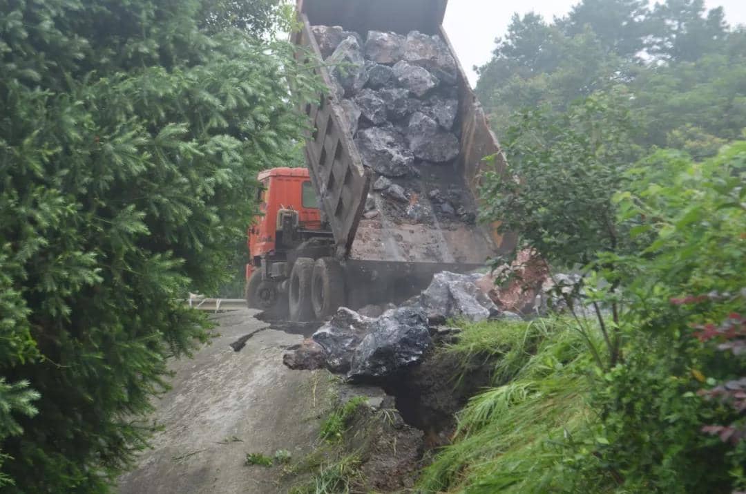 用石頭填堵塌方路段