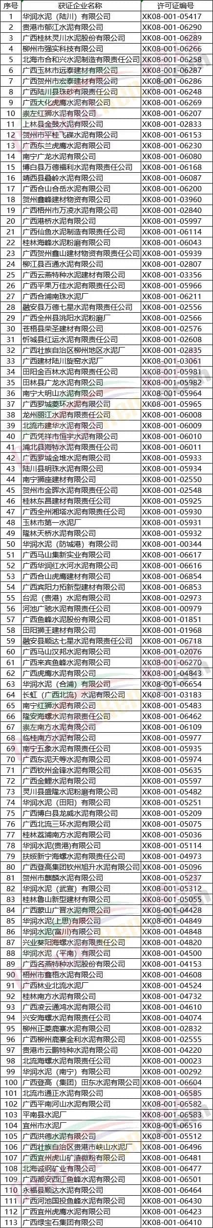 附浙江、江西、湖南、廣西、重慶、四川、貴州7省區(qū)市部分水泥企業(yè)名單如下: