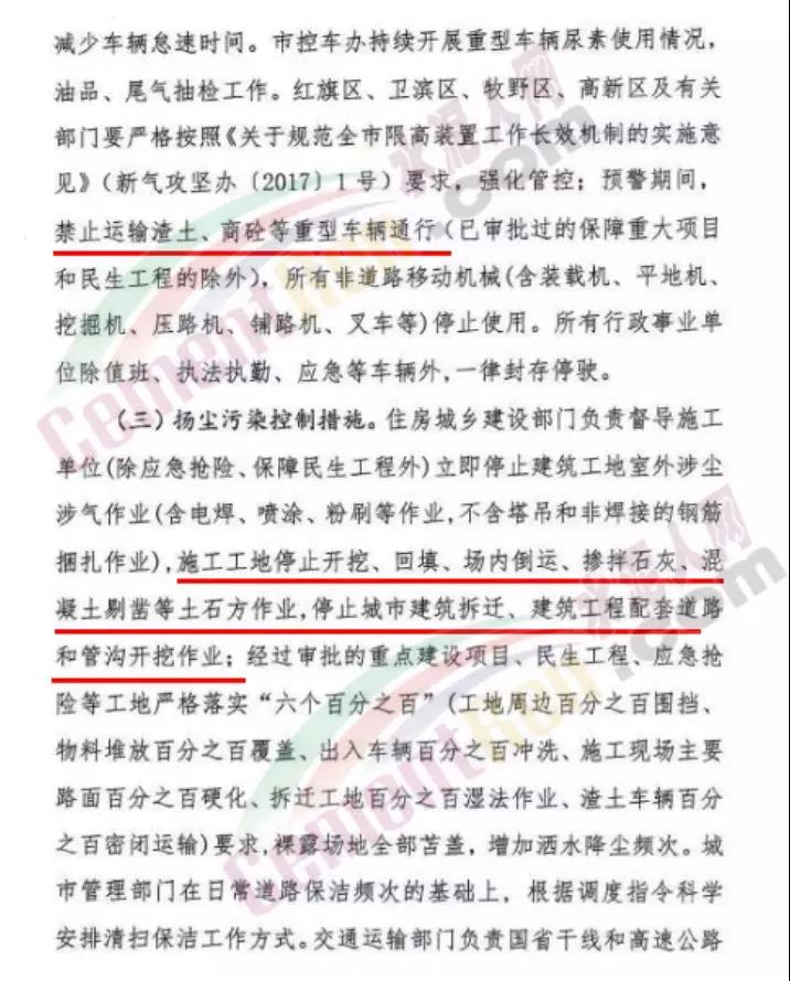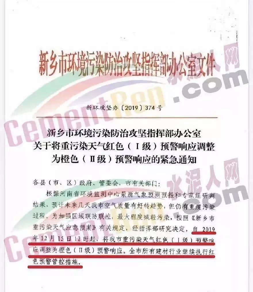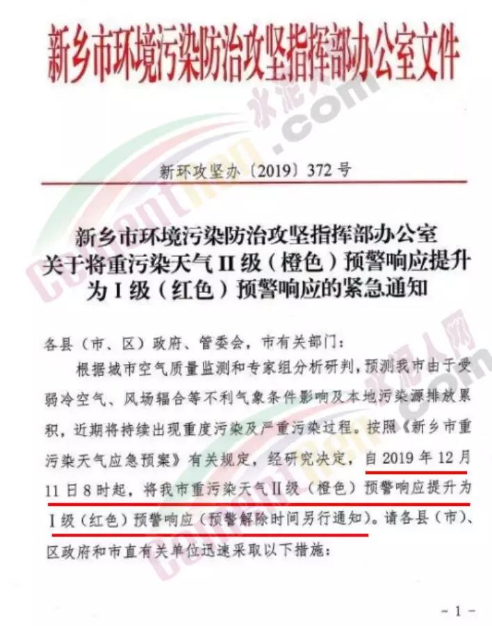 日前,新鄉(xiāng)市環(huán)境防治攻堅(jiān)指揮部辦公室又發(fā)一文稱,自12月15日12時(shí)起,將新鄉(xiāng)市重污染天氣紅色預(yù)警(I級(jí))降至橙色預(yù)警(II級(jí)),但是全市所有建材行業(yè)企業(yè)仍舊繼續(xù)執(zhí)行紅色預(yù)警管控措施。
