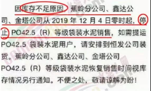 區(qū)域內(nèi)多家主導(dǎo)企業(yè)通知“賣(mài)光了”,企業(yè)負(fù)責(zé)人表示每日出貨達(dá)萬(wàn)噸以上,依然無(wú)法保供,目前是產(chǎn)多少賣(mài)多少供不應(yīng)求了。說(shuō)情的,走后門(mén)的都被主管領(lǐng)地婉言拒絕了,對(duì)部分客戶已經(jīng)不再限量而是停供了。 很多水泥物流司機(jī)在水泥門(mén)口日夜排隊(duì)的時(shí)候,被水泥廠“無(wú)情的”告知,只接受之前預(yù)付款的客戶,此前欠款客戶未清理欠款的將限制或取消發(fā)貨資格,卸車(chē)結(jié)算或貨到付款客戶,由于貨源、車(chē)輛緊張,公司將不再接單。此前已經(jīng)交過(guò)預(yù)付款的客戶公司統(tǒng)一安排車(chē)輛發(fā)貨,由于水泥廠家生產(chǎn)嚴(yán)重不足,即使是此前交過(guò)預(yù)付款的客戶也需排隊(duì)等待。此前,塔牌營(yíng)銷(xiāo)公司也曾發(fā)布通知稱,因庫(kù)存不足原因,蕉嶺分公司、鑫達(dá)公司、金塔公司停止PO42.5(R)等級(jí)袋裝水泥銷(xiāo)售,恢復(fù)銷(xiāo)售時(shí)間視庫(kù)存情況另行通知。