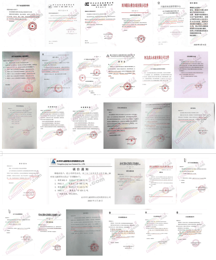 同期重慶市富豐水泥集團(tuán)特種水泥有限公司、重慶天助水泥(集團(tuán))有限公司、重慶金隅冀東水泥貿(mào)易有限公司、臺泥(重慶)水泥有限公司通知、重慶南桐礦業(yè)有限責(zé)任公司通知從5月15日起,上調(diào)水泥價(jià)格30元/噸。
