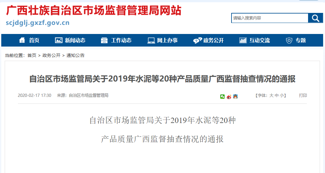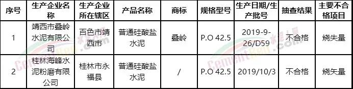 廣西市場(chǎng)監(jiān)管局官網(wǎng)通報(bào)2019年水泥等20種產(chǎn)品質(zhì)量廣西監(jiān)督抽查情況稱(chēng):2019年共抽查90家企業(yè)的166批次水泥產(chǎn)品,其中生產(chǎn)領(lǐng)域抽查159批次,流通領(lǐng)域抽查7批次。不合格產(chǎn)品2批次,不合格發(fā)現(xiàn)率為1.2%。其中生產(chǎn)領(lǐng)域抽查合格157批次,不合格產(chǎn)品2批次,不合格發(fā)現(xiàn)率為1.26%;抽查不合格項(xiàng)目為燒失量。