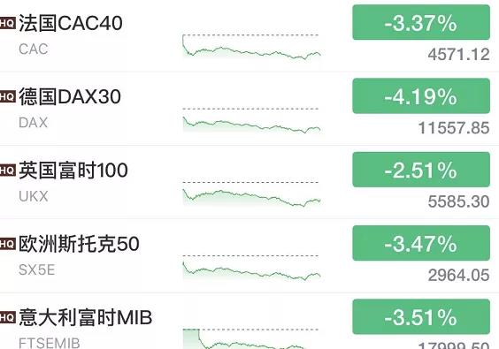 受疫情等因素的影響,歐美股市腥風血雨,一片殺跌!歐洲股市被錘完之后,美股繼續(xù)錘!