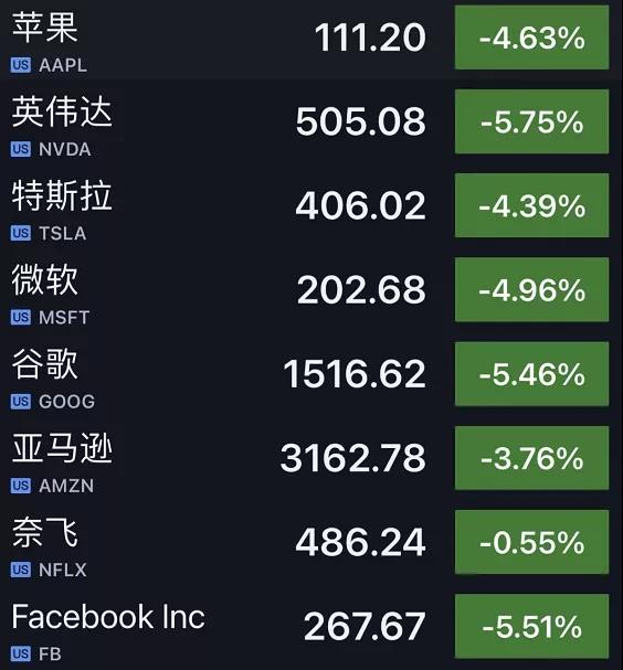 科技股領(lǐng)跌納指,英偉達跌超5.7%,谷歌、推特、微軟均超5%,蘋果跌逾4.6%。