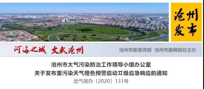 滄州市11月9日8時(shí)發(fā)布重污染天氣橙色預(yù)警,啟動Ⅱ級應(yīng)急響應(yīng)