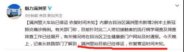 內(nèi)蒙古滿洲里市所有人員核酸檢測,火車停運(yùn)、學(xué)校停課、公共場所暫停營業(yè)!