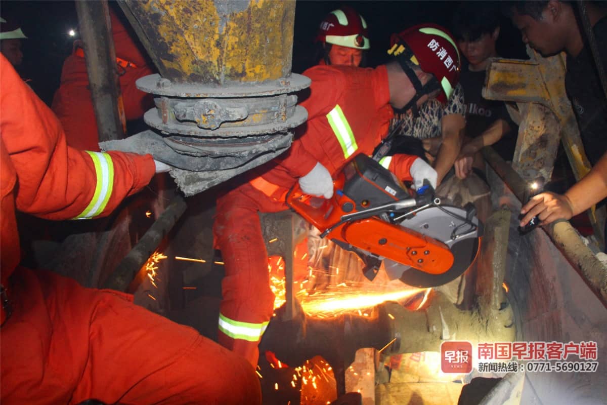 12月13日晚,浦北縣一名男子操作攪拌機時,不慎被卷入了進料口,身體被攪拌葉緊緊卡住。消防人員到場破拆,將男子救出。目前該男子無生命危險,但背部受傷嚴重。