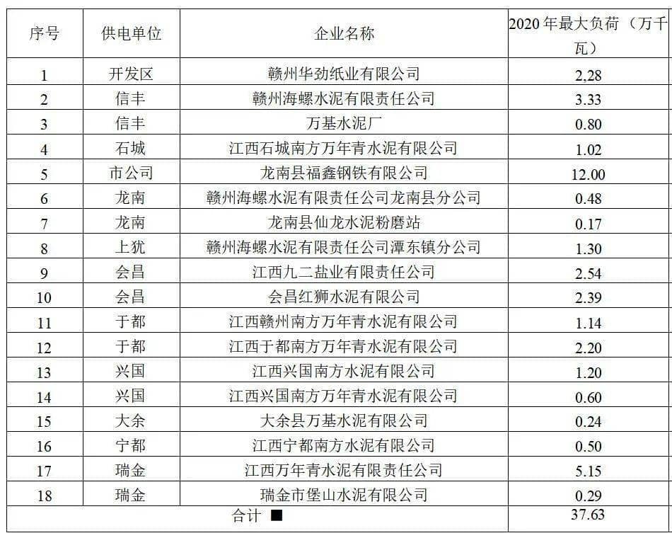 江西瑞金萬年青水泥有限責(zé)任公司、江西興國(guó)南方水泥有限公司、江西贛州南方萬年青水泥有限公司、江西于都南方萬年青水泥有限公司、贛州海螺水泥有限責(zé)任公司、會(huì)昌紅獅水泥有限公司、江西九二鹽業(yè)有限責(zé)任公司、贛州華勁紙業(yè)有限公司、江西朝盛礦業(yè)有限 公司等9家有 自備發(fā)電機(jī)組的用戶做到穩(wěn)發(fā)滿發(fā)。