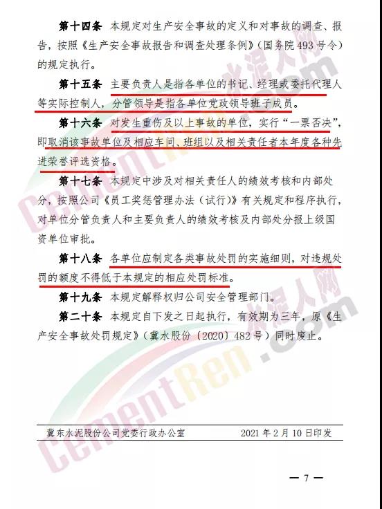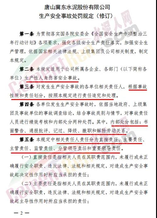 唐山冀東水泥股份有限公司《生產(chǎn)安全事故處罰規(guī)定》全文如下: