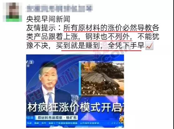 鋼球廠家通知:所有材料的漲價必然導致各類產品跟著上漲,鋼球也不例外,不能猶豫不絕,買到就是賺到,全憑下手早。如果這兩天訂貨覺得貴了,不要慌再觀察幾天更貴,因為原材料又漲價了。
