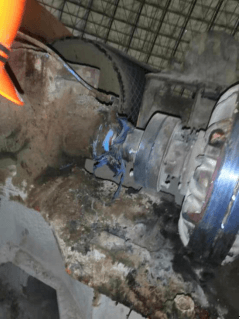 2020年12月31日,王求生于8時按規(guī)定簽到后到均化庫堆取料機崗位工作。15時左右,機械巡檢工吳道榮在B線均化庫門口遇見王求生。22時48分左右,王求生女兒致電原料分廠負(fù)責(zé)人胡延樹,詢問父親16時下班后是否加班,胡延樹隨即查看簽到表后發(fā)現(xiàn)王求生有上班簽到,無下班簽字記錄。胡延樹通過對講機向周六彬核查交接班情況,周六彬反饋未與其當(dāng)面交接班,胡延樹又電話詢問王求生同班作業(yè)的丁裕華,丁裕華表示未看到王求生。因現(xiàn)場無監(jiān)控視頻,于是胡延樹趕到王求生工作崗位和周六彬進(jìn)行排查尋找,23時05分左右,在對A線堆取料機上部的堆料機部分進(jìn)行查找時,在堆料機電磁離合器傳動軸處發(fā)現(xiàn)王求生,其頭部朝西,腳朝東,面向上,右臂環(huán)抱傳動軸,身體緊挨傳動軸側(cè)臥,傳動軸正在運轉(zhuǎn)。(如圖二、圖三)
