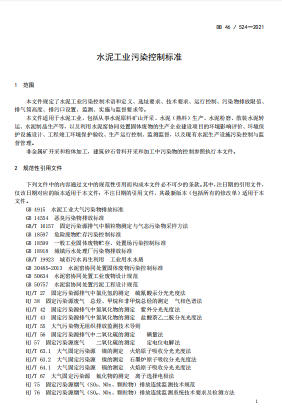 2月27日,記者從海南省生態(tài)環(huán)境廳獲悉,海南省地方標準《水泥工業(yè)污染控制標準》(以下簡稱《標準》)3月1日起正式實施。
