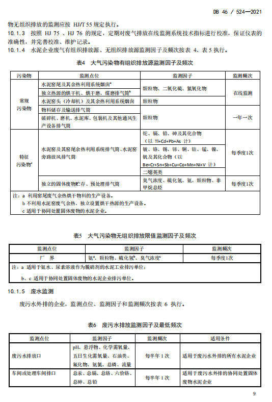 《標準》規(guī)定了省內(nèi)水泥工業(yè)污染控制術語和定義、選址要求、技術要求、運行控制、污染物排放限值、排氣筒高度、排污口設置、監(jiān)測、實施與監(jiān)督要求等。在污染排放控制方面,《標準》根據(jù)各種不同污染源排放的特點設置了不同的限值要求和監(jiān)測要求,對于有組織源設定污染物排放小時濃度限值;對于礦區(qū)、廠區(qū)的無組織源,提出廠界濃度限值要求;對水泥(熟料)生產(chǎn)企業(yè)大氣主要排放口實施在線監(jiān)測的同時,要求對廠界氨、顆粒物濃度實施在線監(jiān)測。