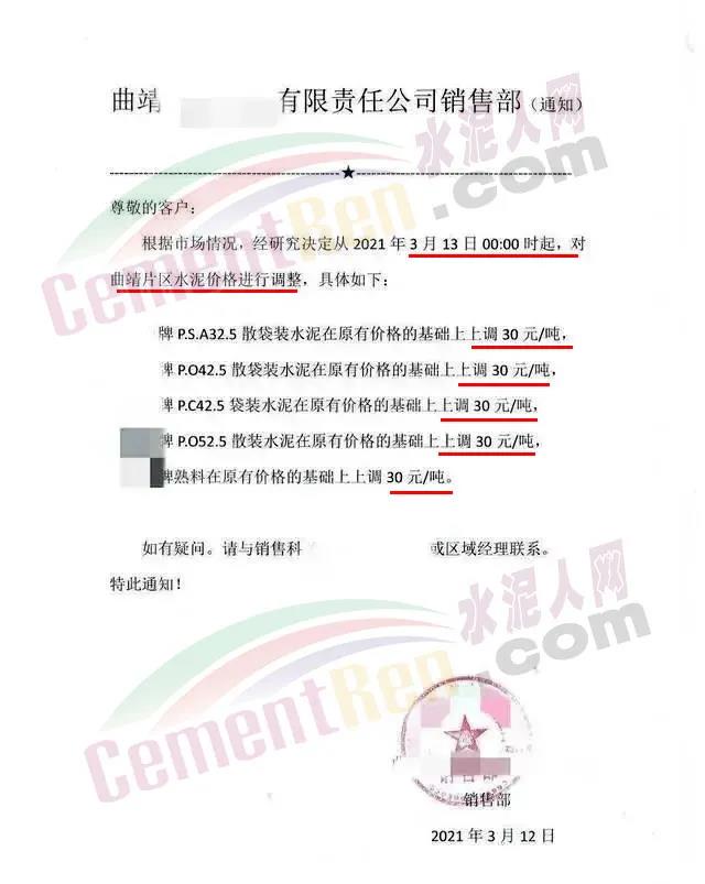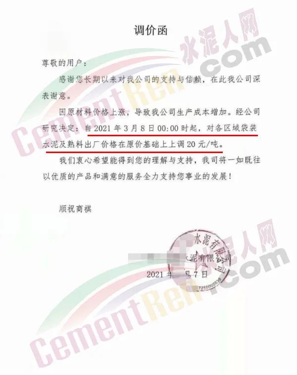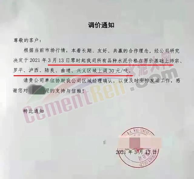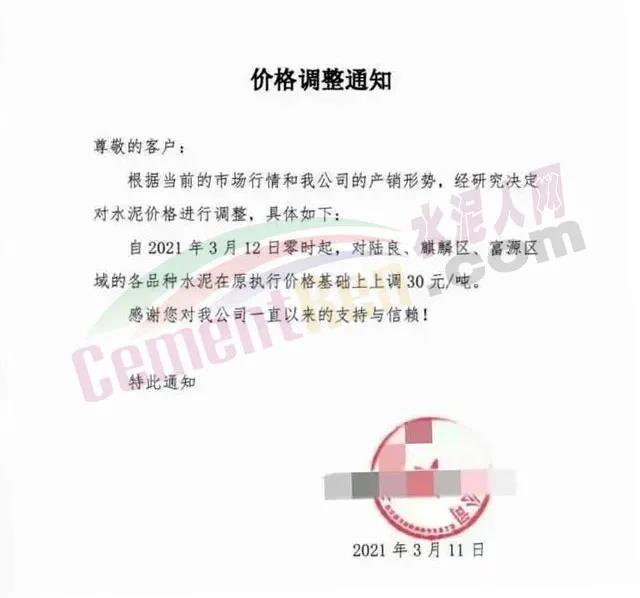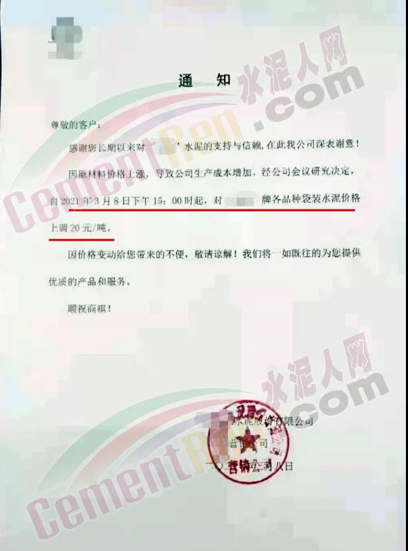 3月3日河南鄭州、洛陽、平頂山、南陽等地區(qū)水泥企業(yè)陸續(xù)通知上調(diào)高標(biāo)水泥價格30元/噸;