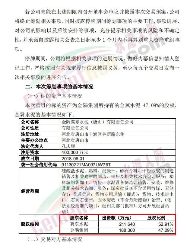 資料顯示,金冀水泥成立于2018年6月1日,注冊(cè)資本為400000萬(wàn)元,經(jīng)營(yíng)范圍為硅酸鹽水泥、熟料、混凝土、砂石骨料、干粉砂漿的制造銷(xiāo)售及相關(guān)建材的制造、銷(xiāo)售及相關(guān)技術(shù)咨詢、服務(wù);塑料編織袋加工、銷(xiāo)售等。