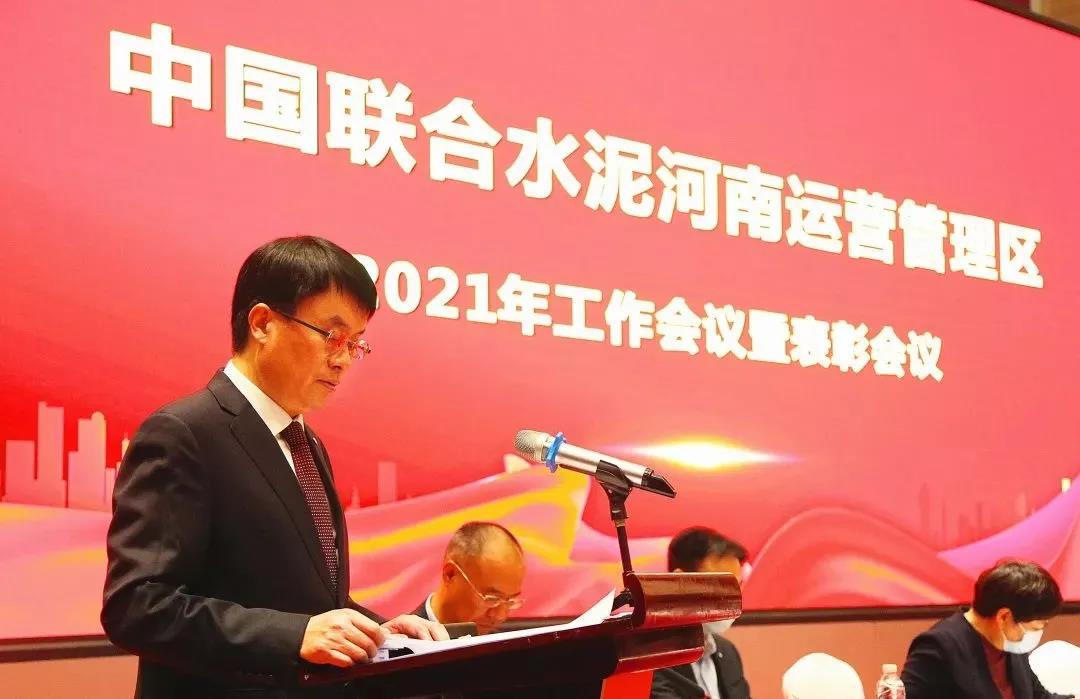 3月16日,中國聯合水泥河南運營管理區(qū)2021年工作會議暨表彰會議在鄭州召開。中國建材股份執(zhí)行董事、副總裁,中國聯合水泥黨委書記、董事長崔星太出席會議并做重要講話。中國聯合水泥黨委副書記、總經理孫建成,黨委副書記武玉金,河南省建筑材料工業(yè)協(xié)會會長王愛貞出席會議。中國聯合水泥副總經理、河南區(qū)總裁劉宗虎作了題為《搶抓機遇 加快布局 奮力推進河南區(qū)高質量發(fā)展》的工作報告,河南區(qū)財務總監(jiān)李學功主持會議。
